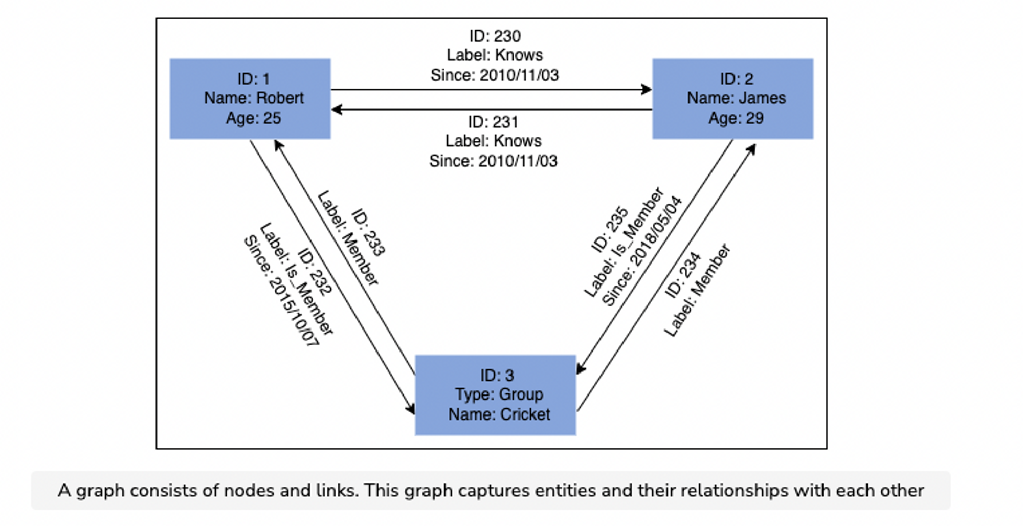 Use case: graph DB 는 소셜 앱에 사용될 수 있으며 서로 다른 종류의 사람들과 그들의 행동간에 재밌는 사실과 수치를 보여줄 수 있다. graph DB 는 엔티티간의 관계를 기반으로 분석하고 의사결정 할 수 있게 하는데 중점을 둔다. graph DB 의 특성은 데이터 규제, 보안, 머신러닝 연구, 금융 서비스 기반 앱 등에 적합할 수 있다.